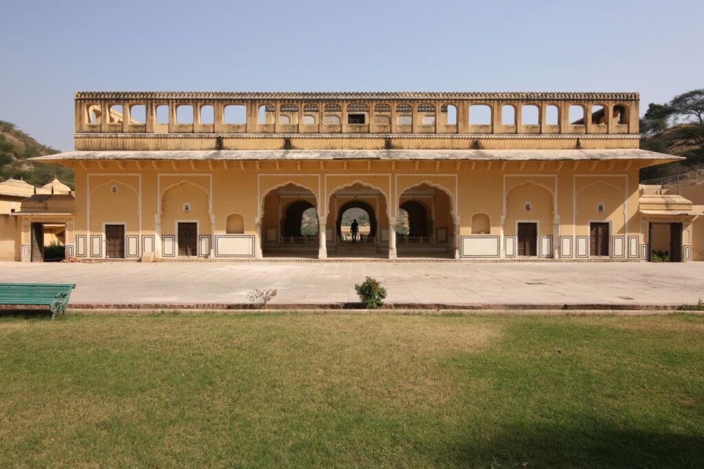 Jaibagh Palace provides a quieter royal setting compared to busier forts. The property maintains classic Rajasthani design with open courtyards.